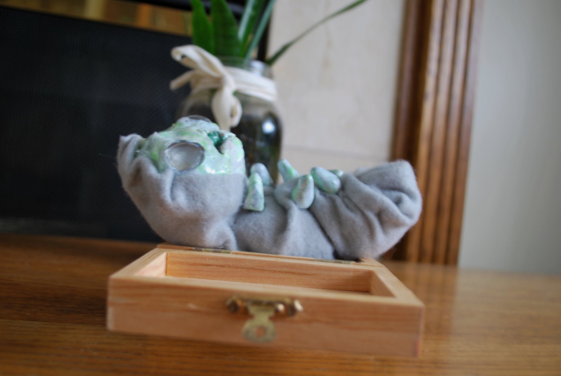 This Larva is named Sage she fits great in purses and loves to come along for adventures. She is a zombie-type larva! Sage loves to climb trees and sleep in hammocks but beware! Once you fall asleep she may try to nibble on your brain.