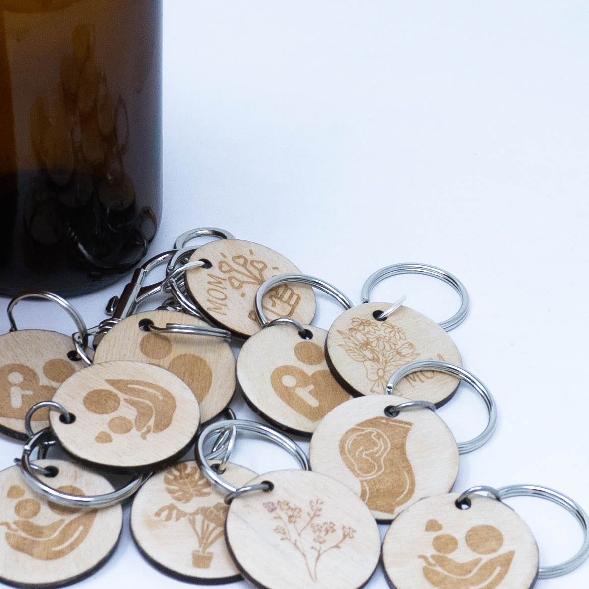 Laser cut 1/8" plywood discs, with pretty engraved designs, which can also be customised on the reverse with a message!